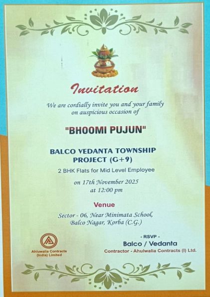 कोरबा/बालकोनगर (पब्लिक फोरम)। भारतीय जनता पार्टी बालको नगर मंडल ने बालको वेदांता द्वारा मिनीमाता स्कूल के समीप प्रस्तावित नई टाउनशिप परियोजना (G+9) के भूमि पूजन का बहिष्कार करने का निर्णय लिया है। यह भूमि पूजन 17 नवंबर को आयोजित किया जाना है।