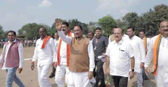 मुख्यमंत्री ने स्थानीय जनप्रतिनिधियों से क्षेत्र के विकास कार्यों की जानकारी ली और जनता का अभिवादन स्वीकार किया।