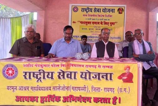 रायगढ़ (पब्लिक फोरम)। शहीद नंदकुमार पटेल विश्वविद्यालय रायगढ़ से संबद्ध बटमूल आश्रम महाविद्यालय साल्हेओना महापल्ली द्वारा आयोजित राष्ट्रीय सेवा योजना (एनएसएस) का सात दिवसीय विशेष शिविर ग्राम जामगांव के शासकीय प्राथमिक विद्यालय परिसर में सफलतापूर्वक संपन्न हुआ। समापन समारोह के मुख्य अतिथि रायगढ़ विधानसभा क्षेत्र के पूर्व विधायक विजय अग्रवाल रहे।
