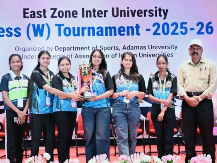 खरसिया (पब्लिक फोरम)। नगर की होनहार बिटिया जेश केशरवानी ने अपनी शतरंज की चालो से विरोधी खेमे में मचाई हलचल। विदित है कि ईस्ट जोन इंटर यूनिवर्सिटी चेस चैंपियनशिप 2025-26, एडम्स यूनिवर्सिटी कोलकाता मे आयोजित हुई जिसमें 22 यूनिवर्सिटी के खिलाडियों ने भाग लिया, पं.रविशंकर शुक्ल यूनिवर्सिटी, रायपुर से जेश केशरवानी अपनी टीम के साथ भाग लेकर शानदार प्रदर्शन करते हुए अपनी टीम को अगले राउंड के लिए आगे बढ़ाया बेहतरीन प्रदर्शन करते हुए जेश केशरवानी, 4.5/5 प्राची यादव, 4/5 भाग्यश्री पटेल, 1/3 संजीता साहू, 2/4 रोशनी साहू, 2/3 टीम ने अंक अर्जित कर अपनी टीम की जीत सुनिश्चित की, इसके साथ ही पं.रविशंकर शुक्ल यूनिवर्सिटी, रायपुर की टीम ने आल इंडिया यूनिवर्सिटी चेस चेम्पियनशिप के लिए अपना स्थान सुरक्षित किया।
