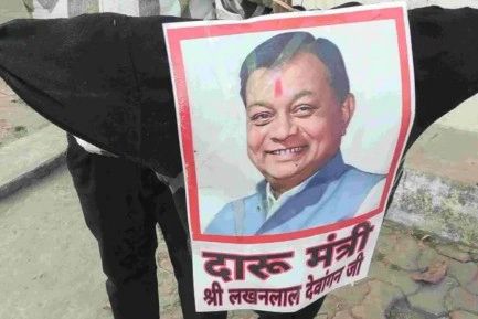 बापू की पुण्यतिथि पर खुली शराब की दुकानें, भड़की युवा कांग्रेस; ‘रघुपति राघव’ गाकर आबकारी मंत्री का पुतला फूंका