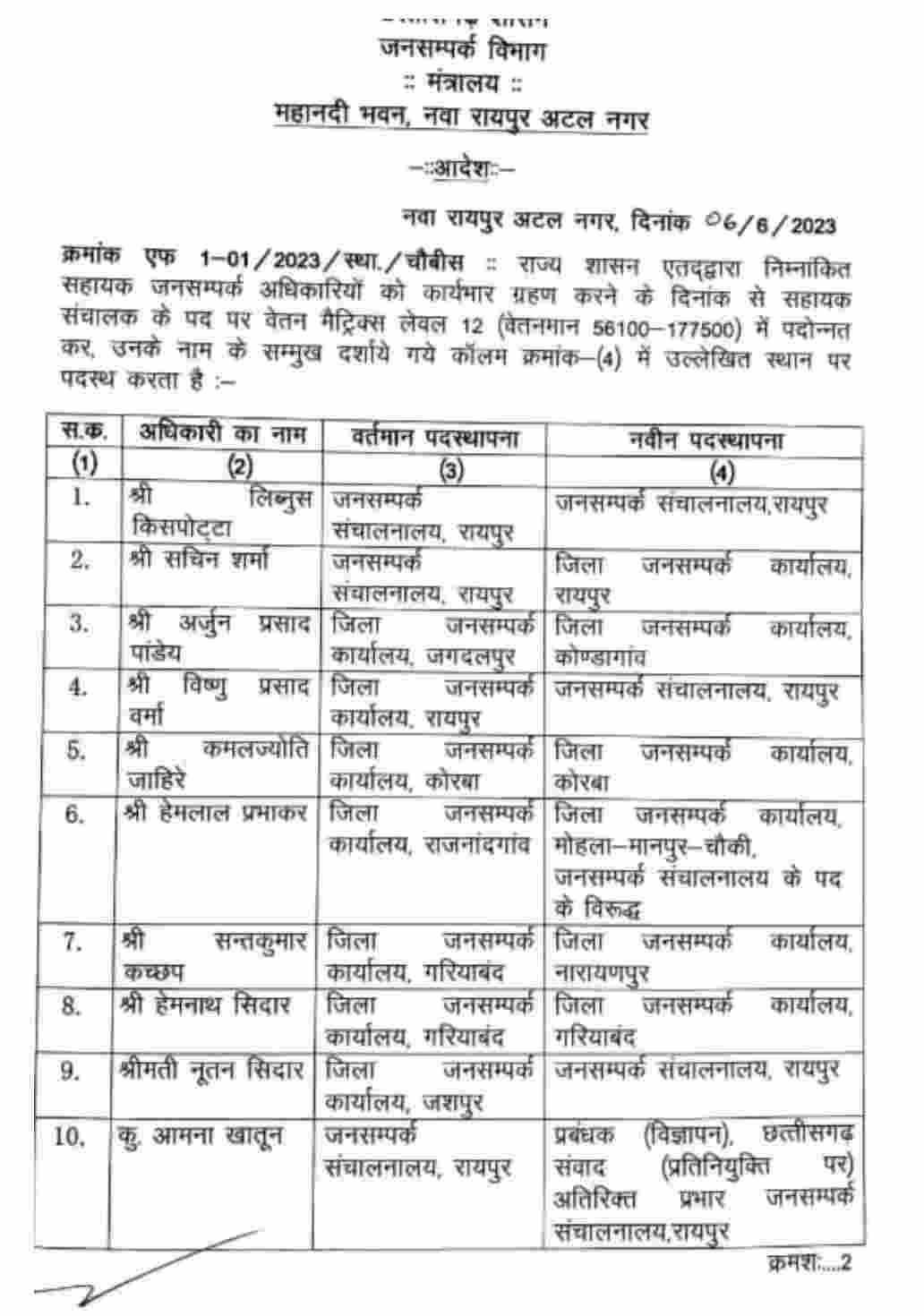 होमआसपास-प्रदेशछत्तीसगढ़ जनसंपर्क विभाग में पदोन्नति और नया पदस्थापना: कमल ज्योति बने जिला...