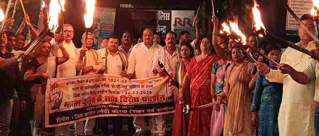कोरबा (पब्लिक फोरम)। अखिल भारतीय कांग्रेस कमेटी (एआईसीसी) के बैंक खातों को फ्रीज करने तथा 1,822 करोड़ रुपये के आयकर नोटिस के विरोध में आज जिला कांग्रेस कमेटी कोरबा के नेतृत्व में टी.पी. नगर चौक से सी.एस.ई.बी. चौक तक मशाल जुलूस के साथ विरोध प्रदर्शन किया गया। इस अवसर पर पूर्व मंत्री जयसिंह अग्रवाल ने कहा कि 30 वर्ष पुराने निराधार मामले का बहाना बनाकर चुनाव से पहले कांग्रेस पार्टी के बैंक खातों को जब्त करना और आयकर नोटिस भेजना लोकतांत्रिक मूल्यों के विरुद्ध है। केंद्र सरकार धन, बल और केंद्रीय एजेंसियों का दुरुपयोग कर विपक्ष को डराने और लोकतंत्र को समाप्त करने की मंशा रखती है।