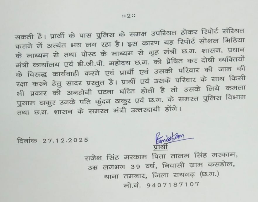 यह घटना सिर्फ एक धमकी नहीं, बल्कि लोकतंत्र में उठने वाली आवाजों को दबाने के प्रयास की ओर इशारा करती है। राजेश सिंह मरकाम जैसे कार्यकर्ता, जो संविधान के दायरे में रहकर अपने समाज के अधिकारों की लड़ाई लड़ते हैं, आज अपनी ही सुरक्षा को लेकर चिंतित हैं।