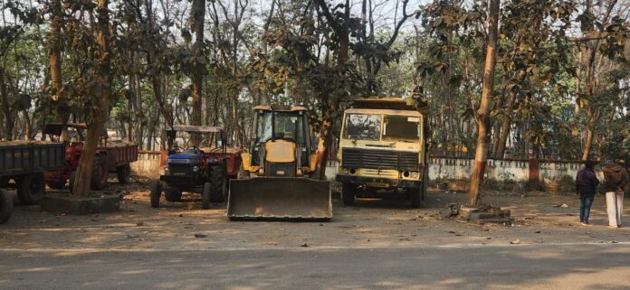 खनिज मुरूम एवं मिट्टी के अवैध उत्खनन एवं परिवहन की लगातार प्राप्त शिकायतों पर कलेक्टर के निर्देशानुसार 02 जनवरी की रात्रि में ग्राम पंचायत संबलपुरी तहसील रायगढ़ में खनिज अमले द्वारा आकस्मिक जांच की गई। जांच के दौरान मौके पर एक जेसीबी एवं तीन टिपर वाहनों के माध्यम से खनिज मुरूम का अवैध उत्खनन एवं परिवहन किया जाना पाया गया। जांच के दौरान वाहन चालक के कथनानुसार उक्त अवैध उत्खनन कार्य रायगढ़ निवासी हरिओम अग्रवाल द्वारा कराया जाना बताया गया। प्रकरण में संलिप्त सभी वाहनों को जप्त कर कलेक्ट्रेट परिसर रायगढ़ में सुरक्षार्थ रखा गया है।