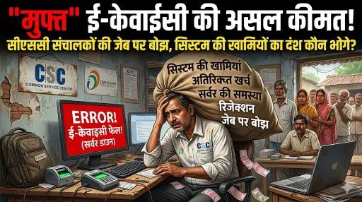 “मुफ्त” ई-केवाईसी की असल कीमत: सीएससी संचालकों की जेब पर बोझ, सिस्टम की खामियों का दंश कौन भोगे?